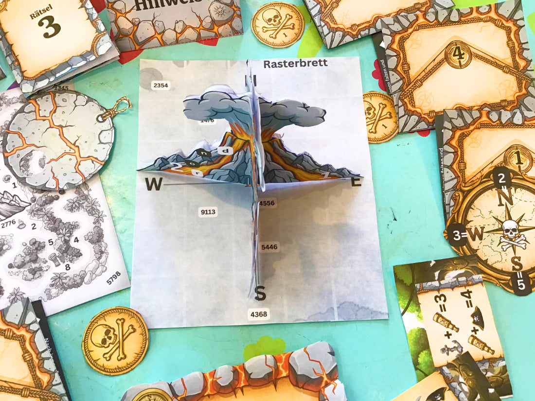 Ahoi, ihr Landratten! Ihr seid auf der geheimnisvollen Isla Fuego gelandet – einer Insel voller Geheimnisse, Schätze und einem unberechenbaren Vulkan, der jeden Moment ausbrechen könnte. Nur wenn ihr die Rätsel löst und den Fluch des Piratenvulkans brecht, könnt ihr euch und eure Beute retten. Ein Abenteuer voller Spannung, Codes und cleverer Aufgaben wartet auf euch!